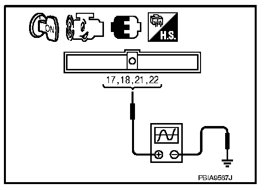 2. Read the voltage signal between ECM terminals 17, 18, 21, 22 and ground with an oscilloscope.