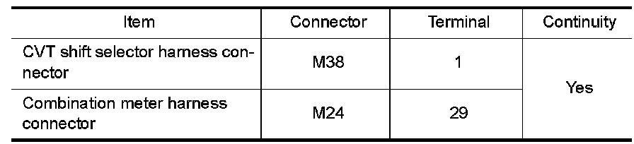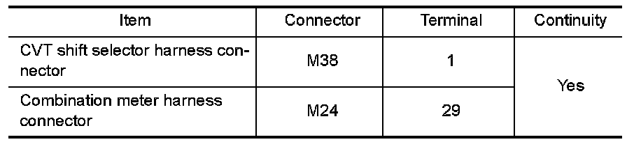 4. Check continuity between CVT shift selector harness connector terminal and ground.