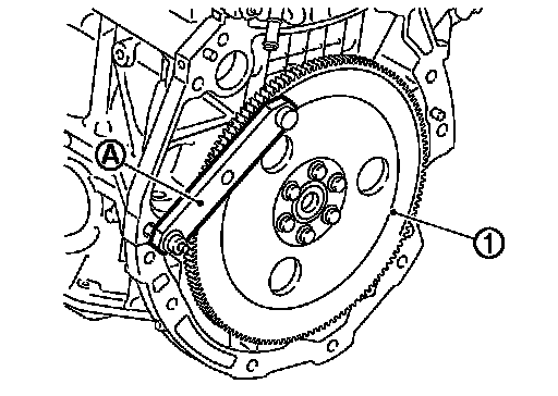 Install flywheel (M/T models) or drive plate (1) (CVT models).