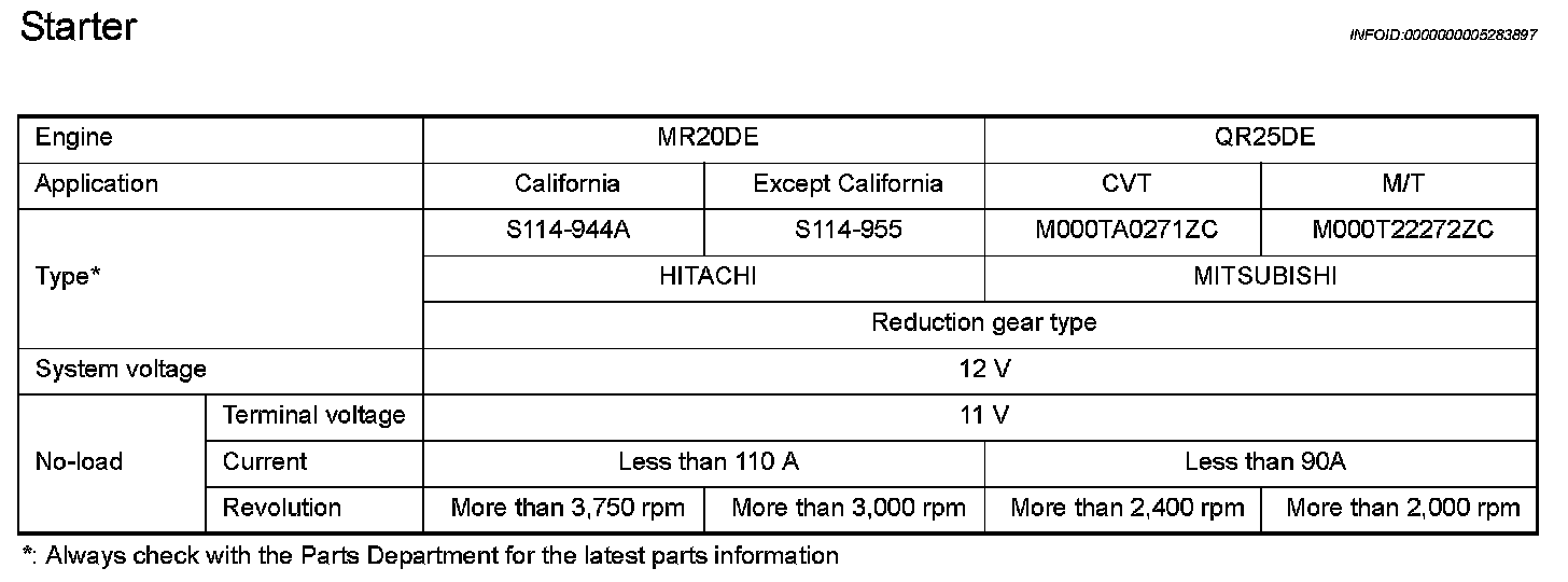 Starter Motor: Specifications