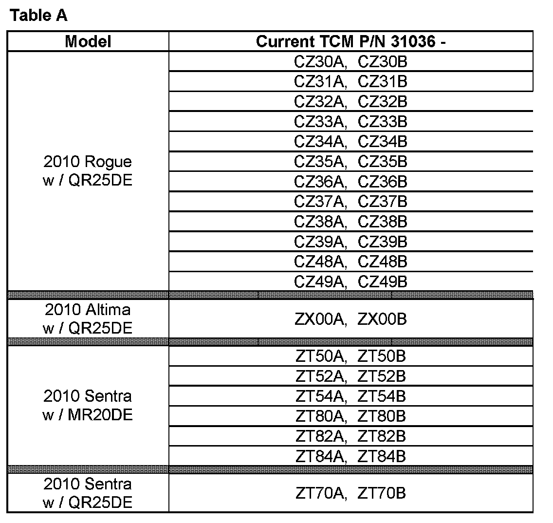 B. Compare the P/N you wrote down to the P/Ns in the Current TCM P/N column in Table A above.