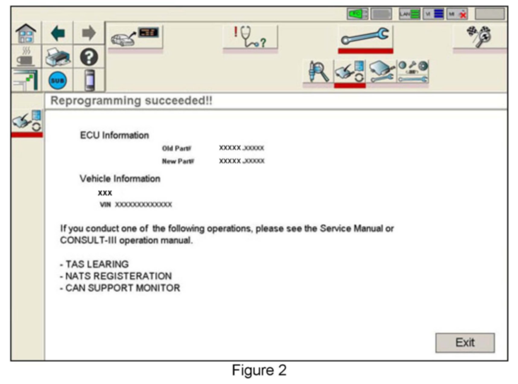 3. If TCM reprogramming applies and you have performed TCM reprogramming; when reprogramming is complete, the screen in Figure 2 appears.