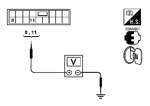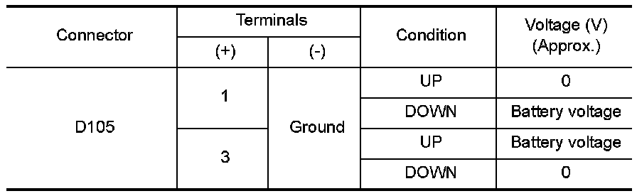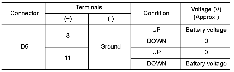 3. Check voltage between main power window and door lock/unlock switch connector and ground.