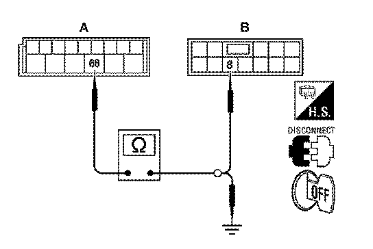 3. Check continuity between BCM connector (A) and power window and door lock/unlock switch RH connector (B).