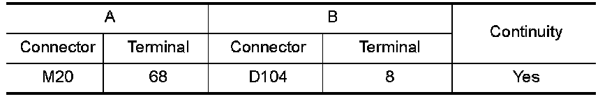 2. Check voltage between power window and door lock/unlock switch RH connector D104 terminal 8 and ground.