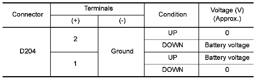 Check continuity between main power window and door lock/unlock switch terminals.