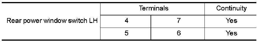 Check continuity between rear power window switch LH terminals.