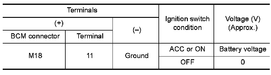 Check voltage between BCM connector and ground.