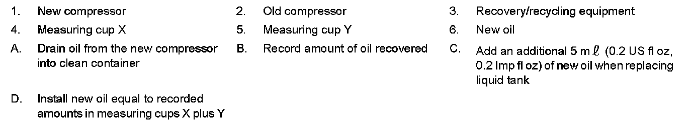 Do not add this 5 m l (0.2 US fl oz, 0.2 Imp fl oz) of oil if only replacing the compressor and not the liquid tank.