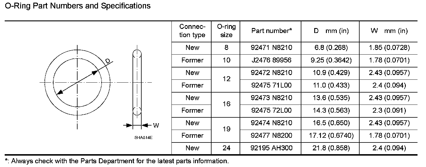 The new and former refrigerant connections use different O-ring configurations. Do not confuse Orings since they are not interchangeable. If a wrong O-ring is installed, refrigerant will leak at, or around, the connection.