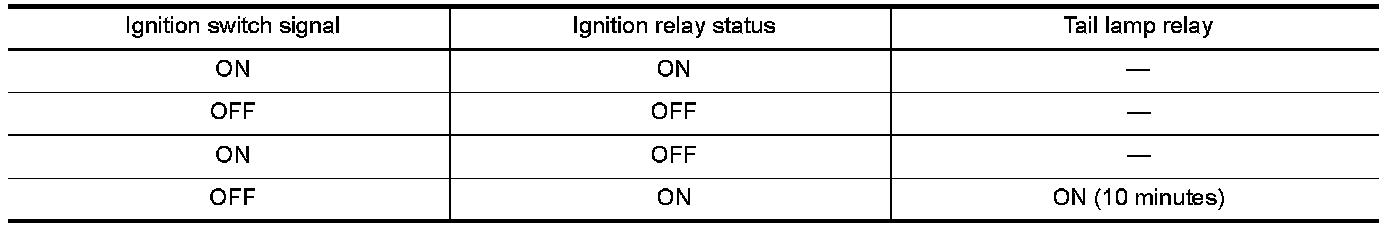 - When the state of the integrated ignition relay does not agree with the state of the ignition switch signal received via CAN communication, the IPDM E/R activates the tail lamp relay.