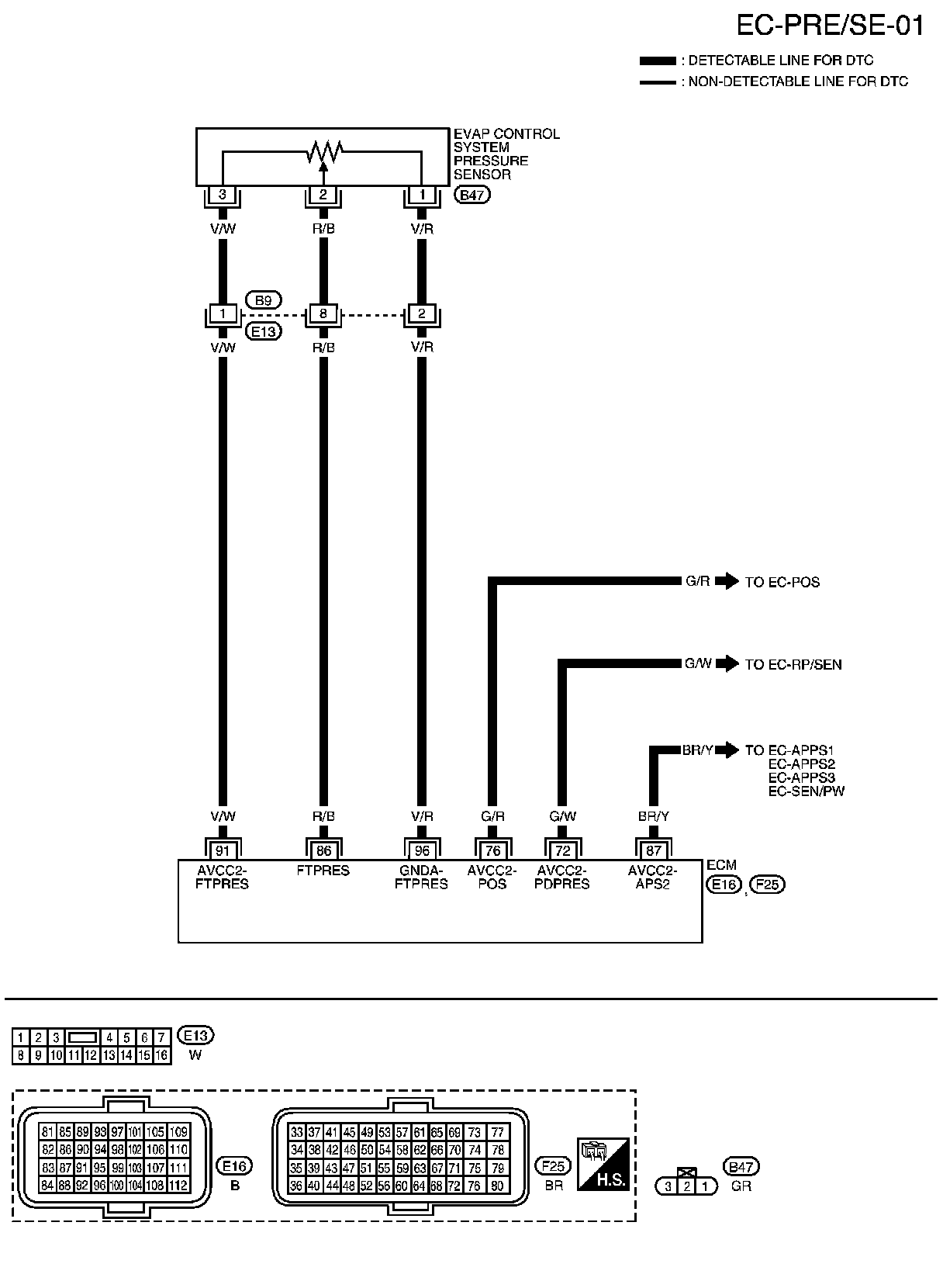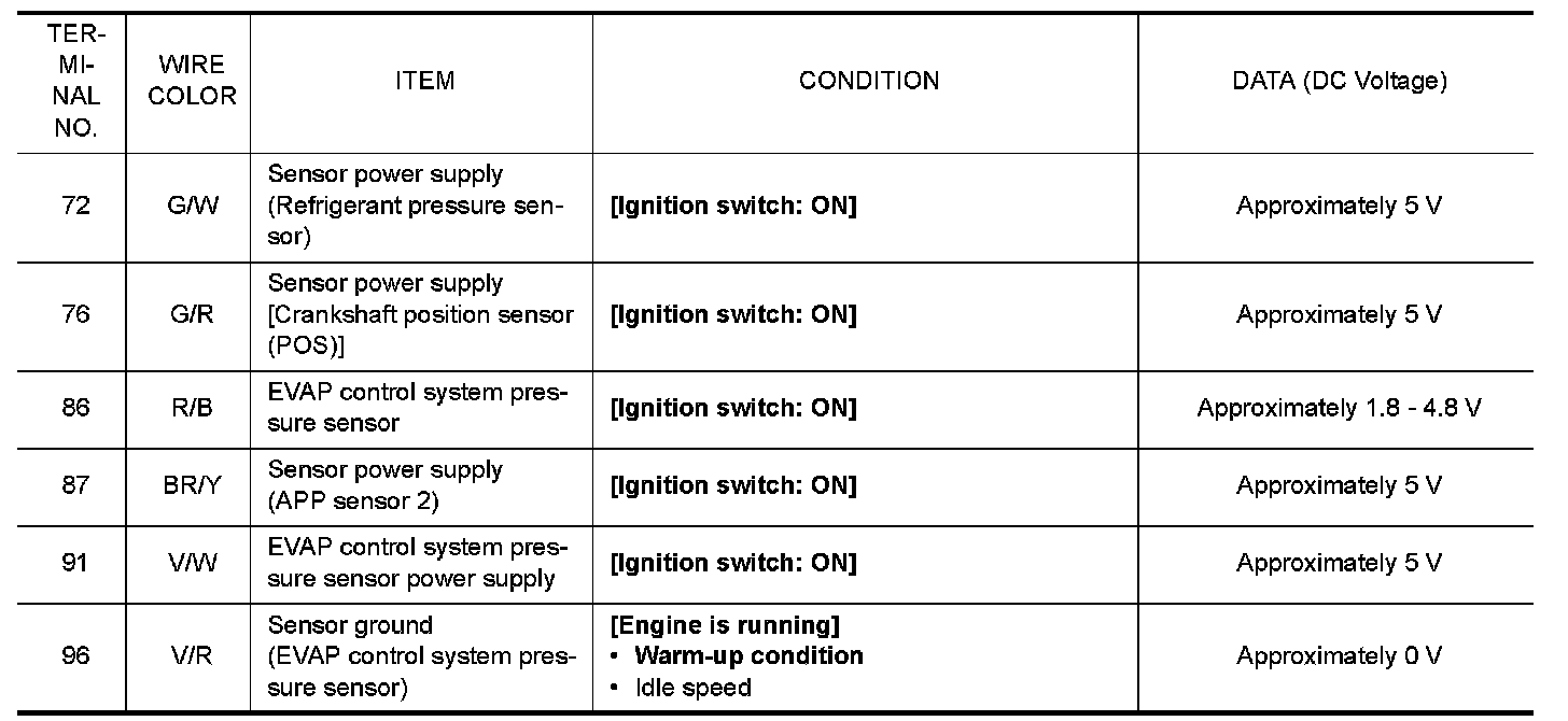 Never use ECM ground terminals when measuring input/output voltage. Doing so may result in damage to the ECM's transistor. Use a ground other than ECM terminals, such as the ground.