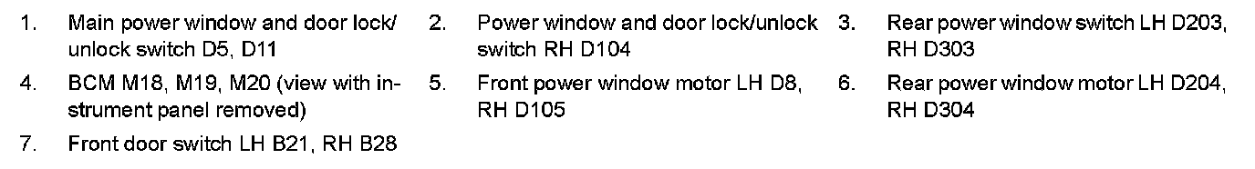 Power Window Switch: Locations