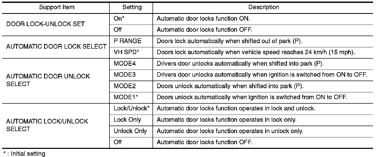 DOOR LOCK : CONSULT-III Function (