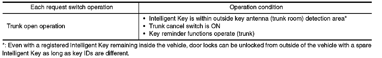 If the following conditions are not satisfied, trunk open operation is not performed even if the request switch is operated.