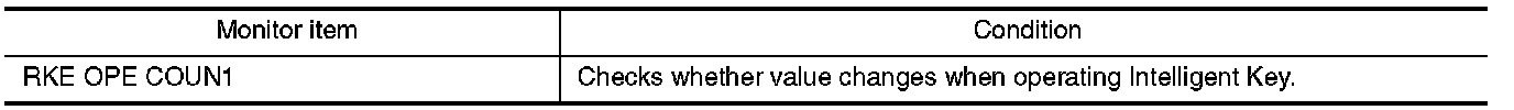 Check remote keyless entry receiver RKE OPE COUN1 in Data Monitor mode with CONSULT-III.