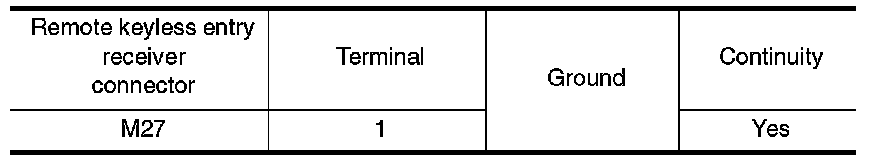 Check continuity between remote keyless entry receiver connector and ground.