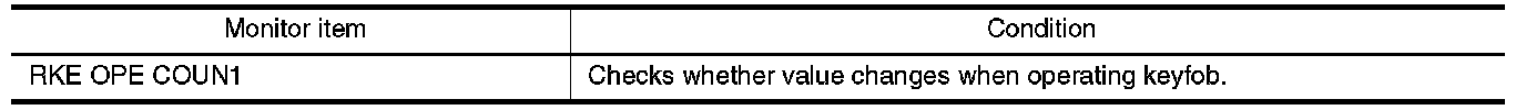 Check remote keyless entry receiver RKE OPE COUN1 in Data Monitor mode with CONSULT-III.