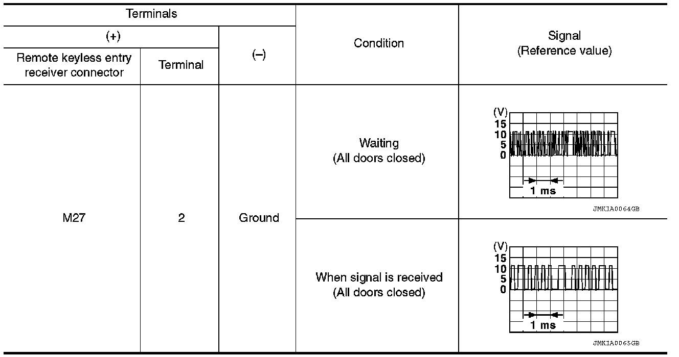 2. Check signal between remote keyless entry receiver connector and ground with oscilloscope.