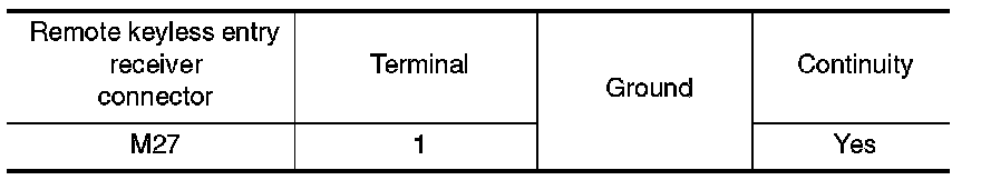 Check continuity between remote keyless entry receiver connector and ground.