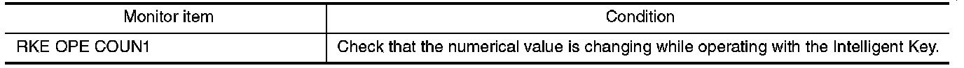 Check remote keyless entry receiver RKE OPE COUN1 in Data Monitor mode with CONSULT-III.