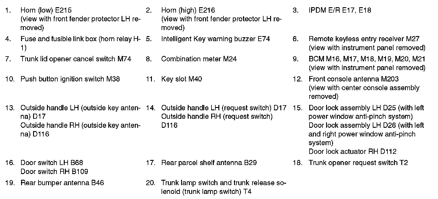 INTELLIGENT KEY : Component Parts Location