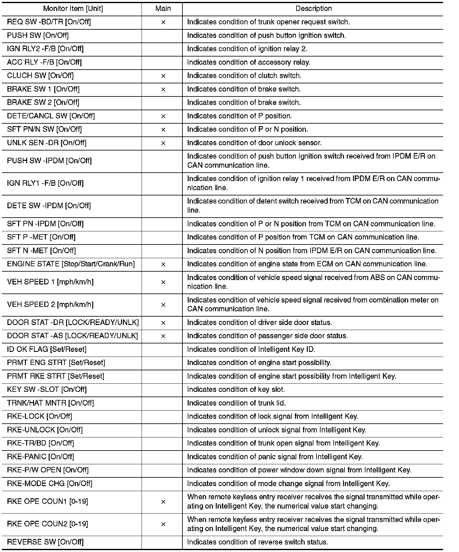 INTELLIGENT KEY : CONSULT-III Function (BCM - INTELLIGENT KEY)