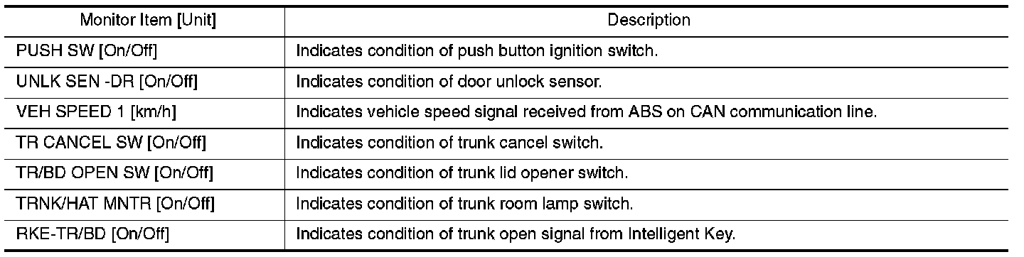 TRUNK : CONSULT-III Function (BCM - TRUNK)