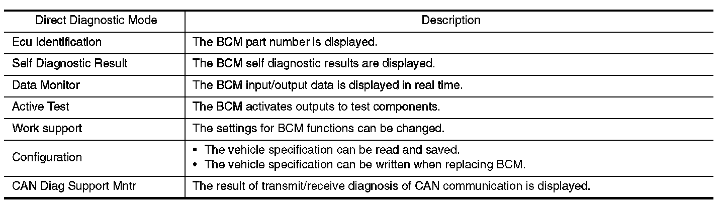 CONSULT-III performs the following functions via CAN communication with BCM.