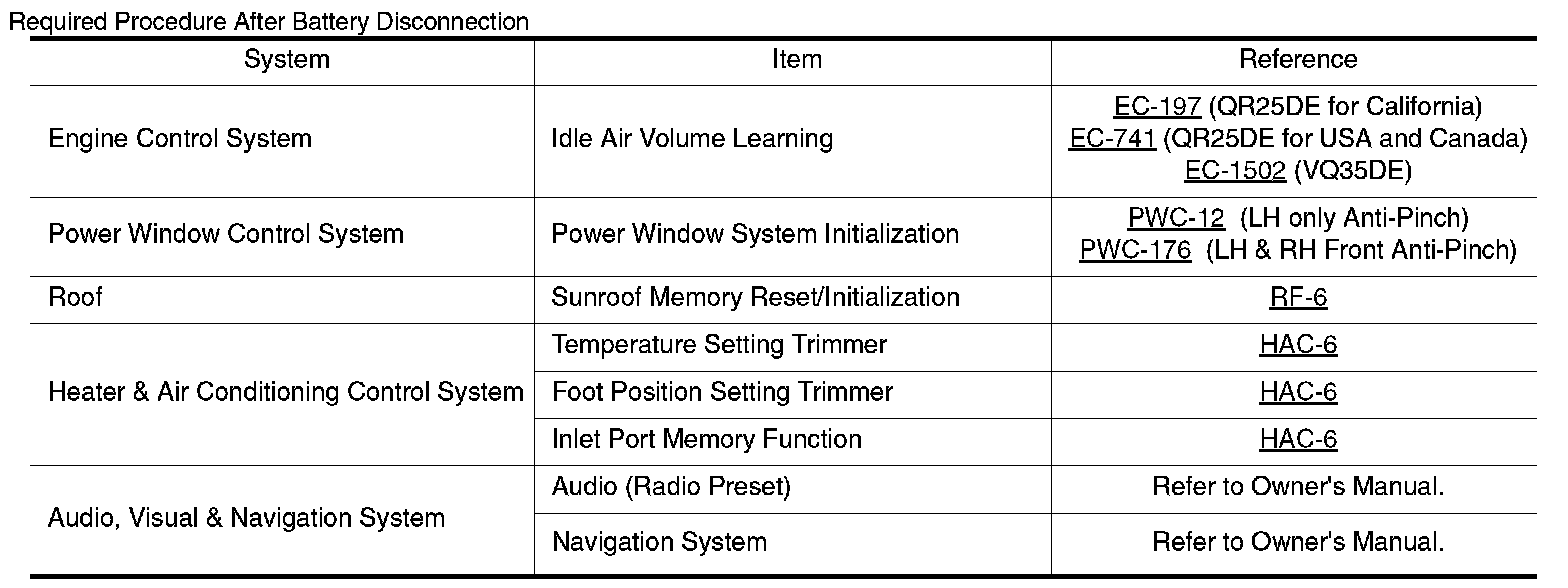 ADDITIONAL SERVICE WHEN REMOVING BATTERY NEGATIVE TERMINAL : Special Repair Requirement