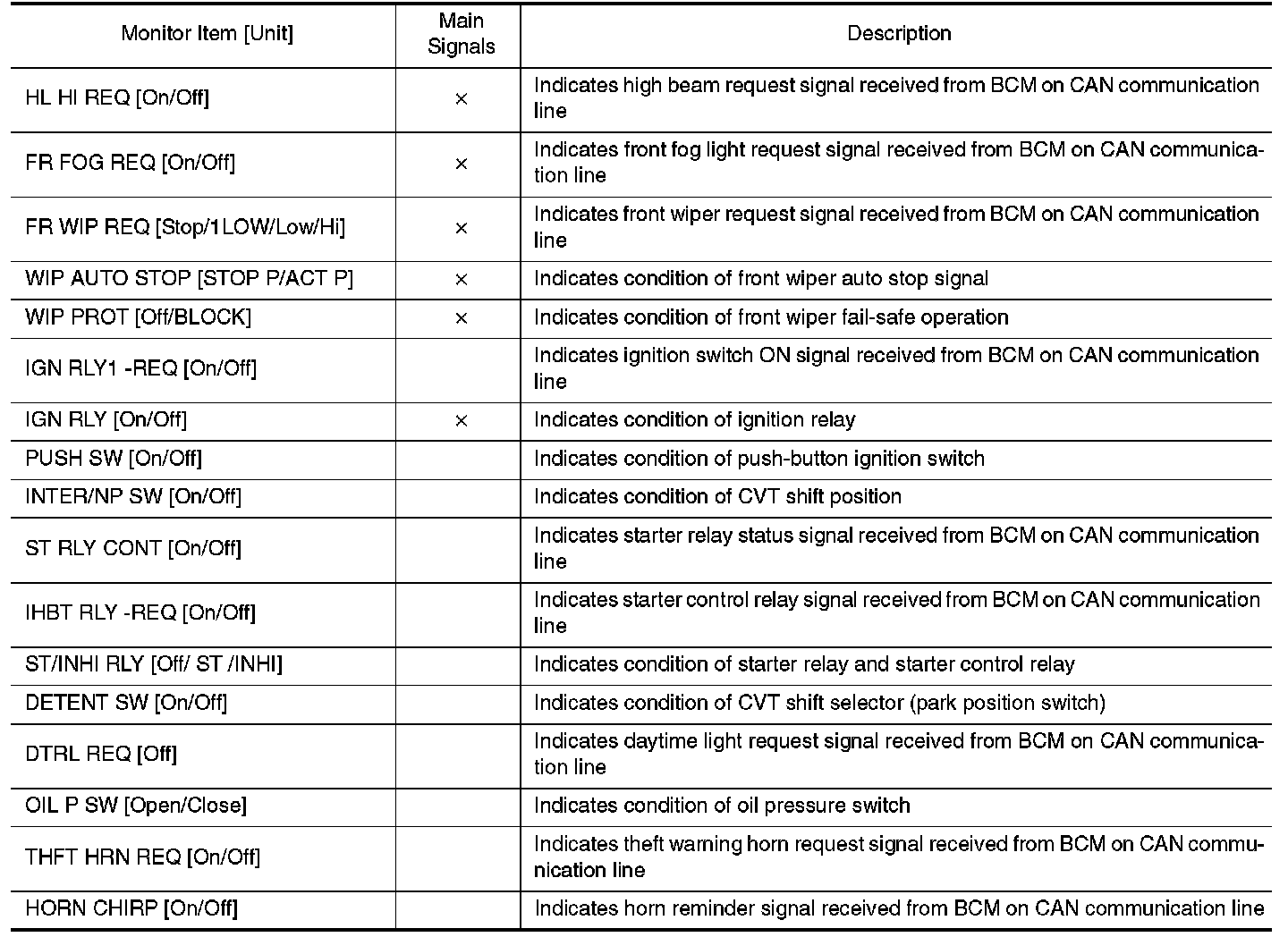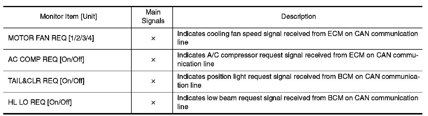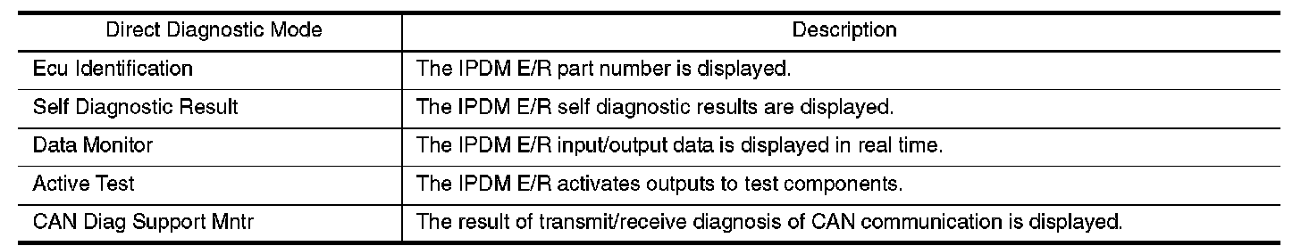 CONSULT-III performs the following functions via CAN communication with IPDM E/R.