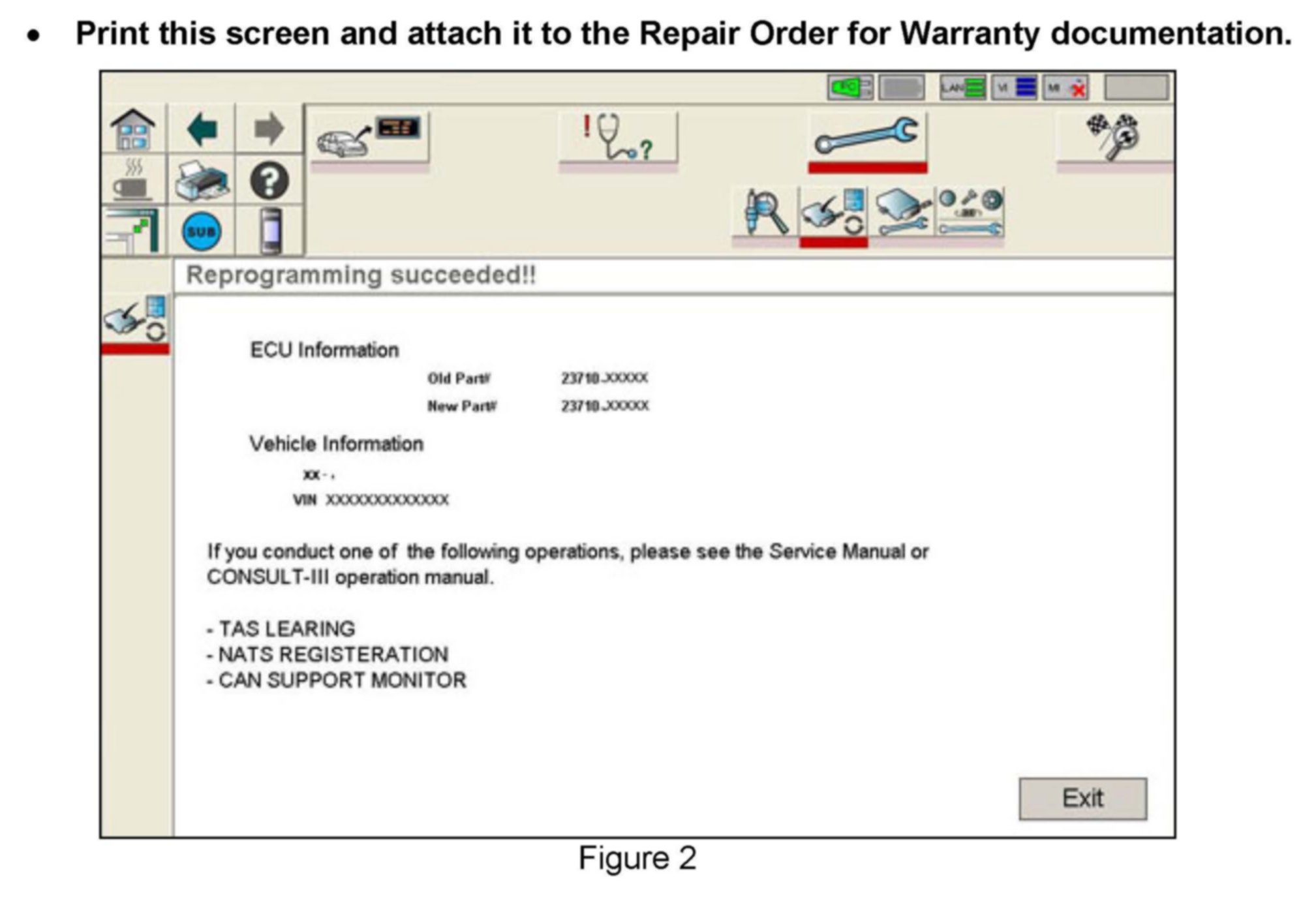 3. If this bulletin applies and you have performed ECM reprogramming, the screen in Figure 2 will display when reprogramming is complete.