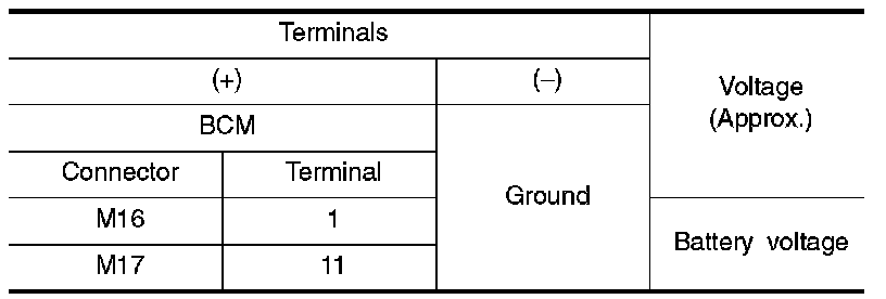 3. Check voltage between BCM harness connector and ground.