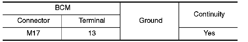 Check continuity between BCM harness connector and ground.