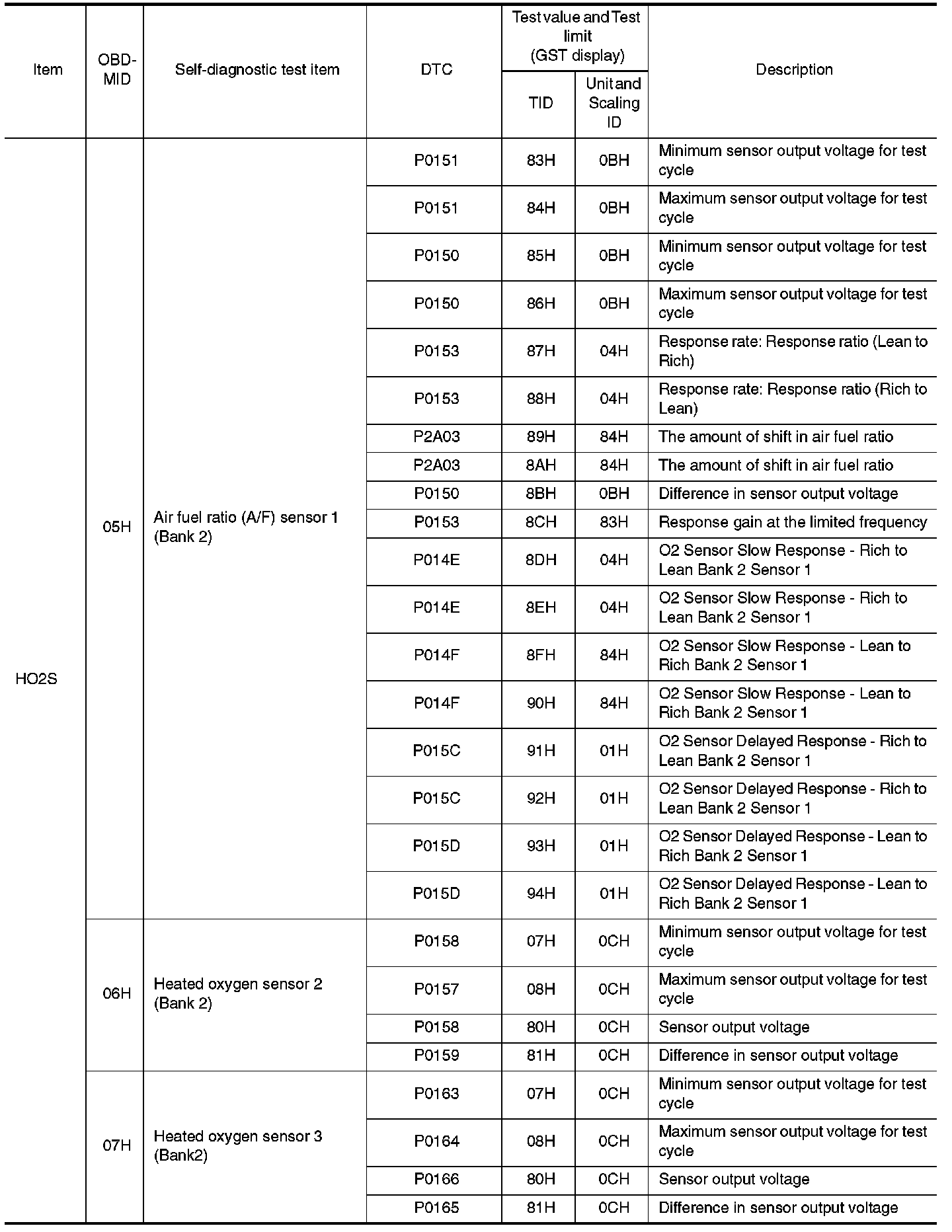 The following is the information specified in Service $06 of SAE J1979/ISO 15031-5.