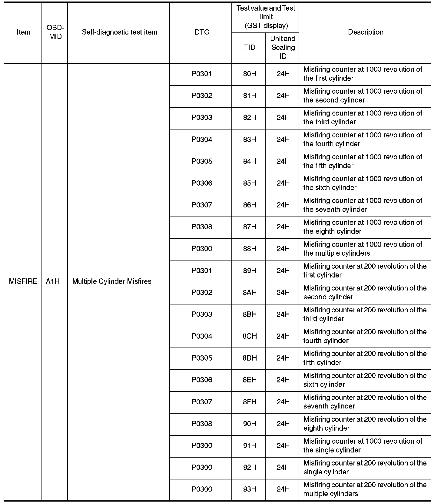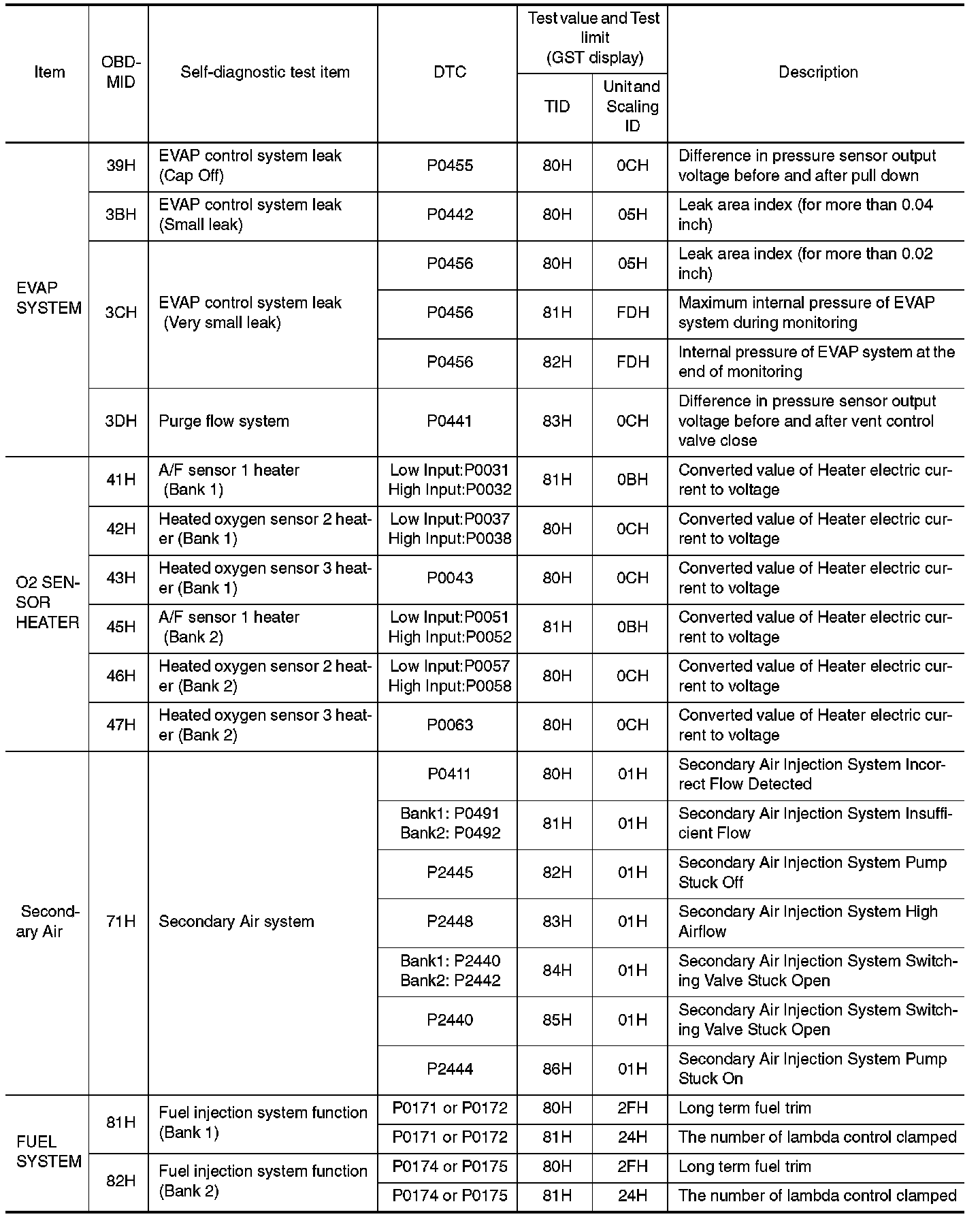 These data (test value and test limit) are specified by On Board Monitor ID (OBDMID), Test ID (TID), Unit and