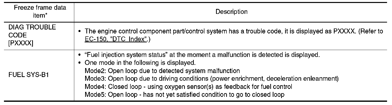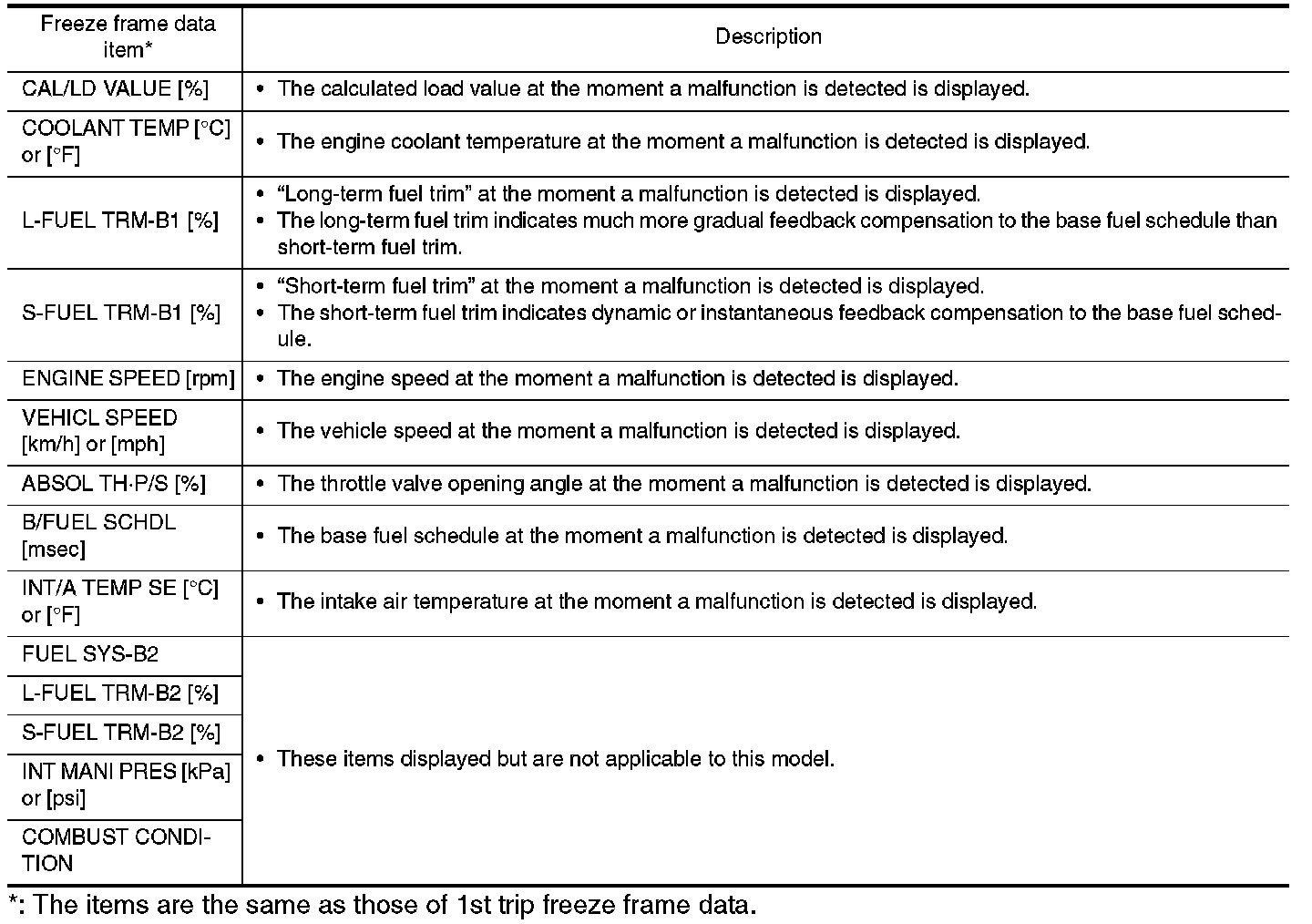 Freeze Frame Data and 1st Trip Freeze Frame Data