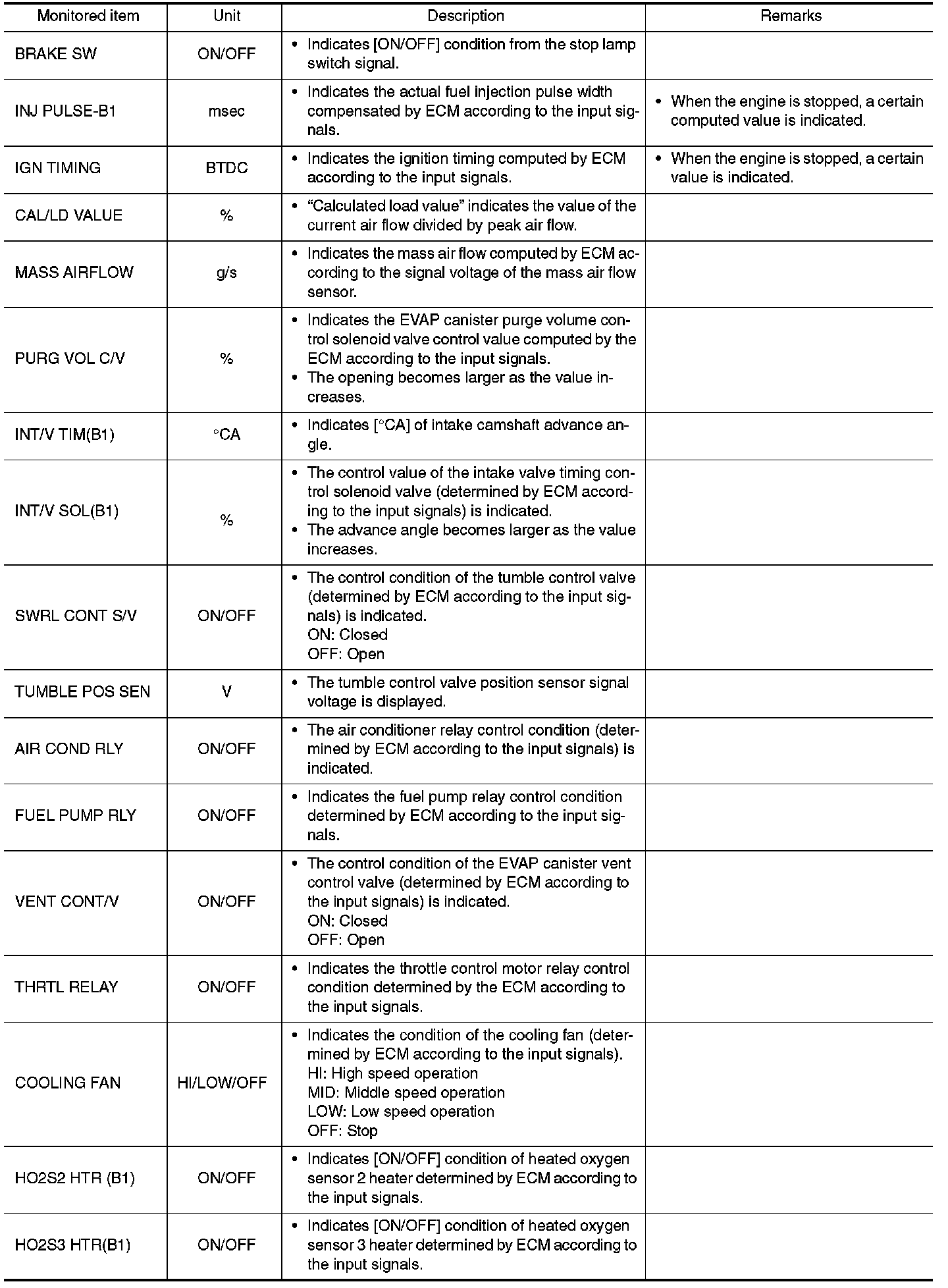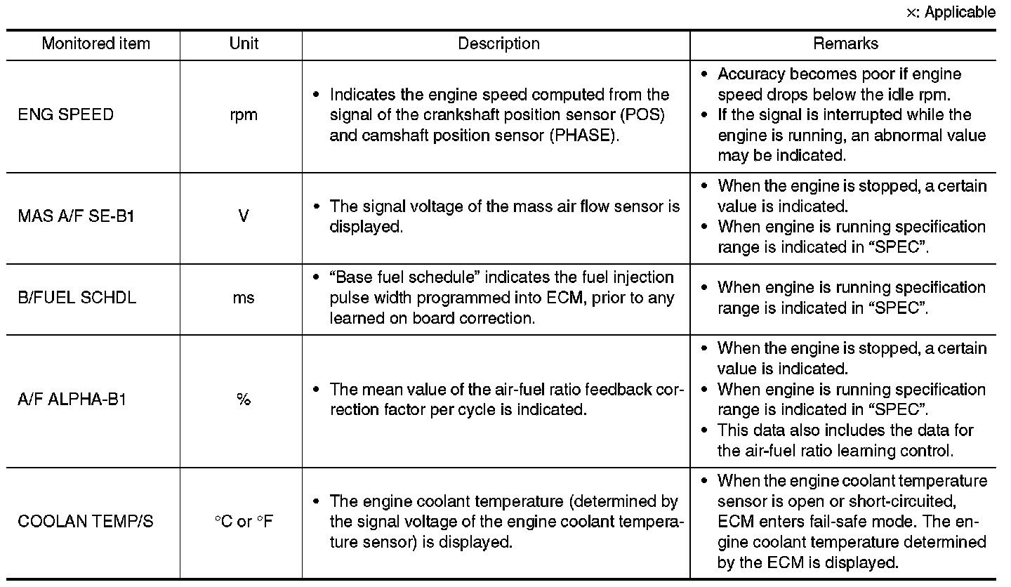 - If "TIME" is neither "0" nor "1t", the DTC occurred in the past and ECM shows the number of times the vehicle has been driven since the last detection of the DTC.