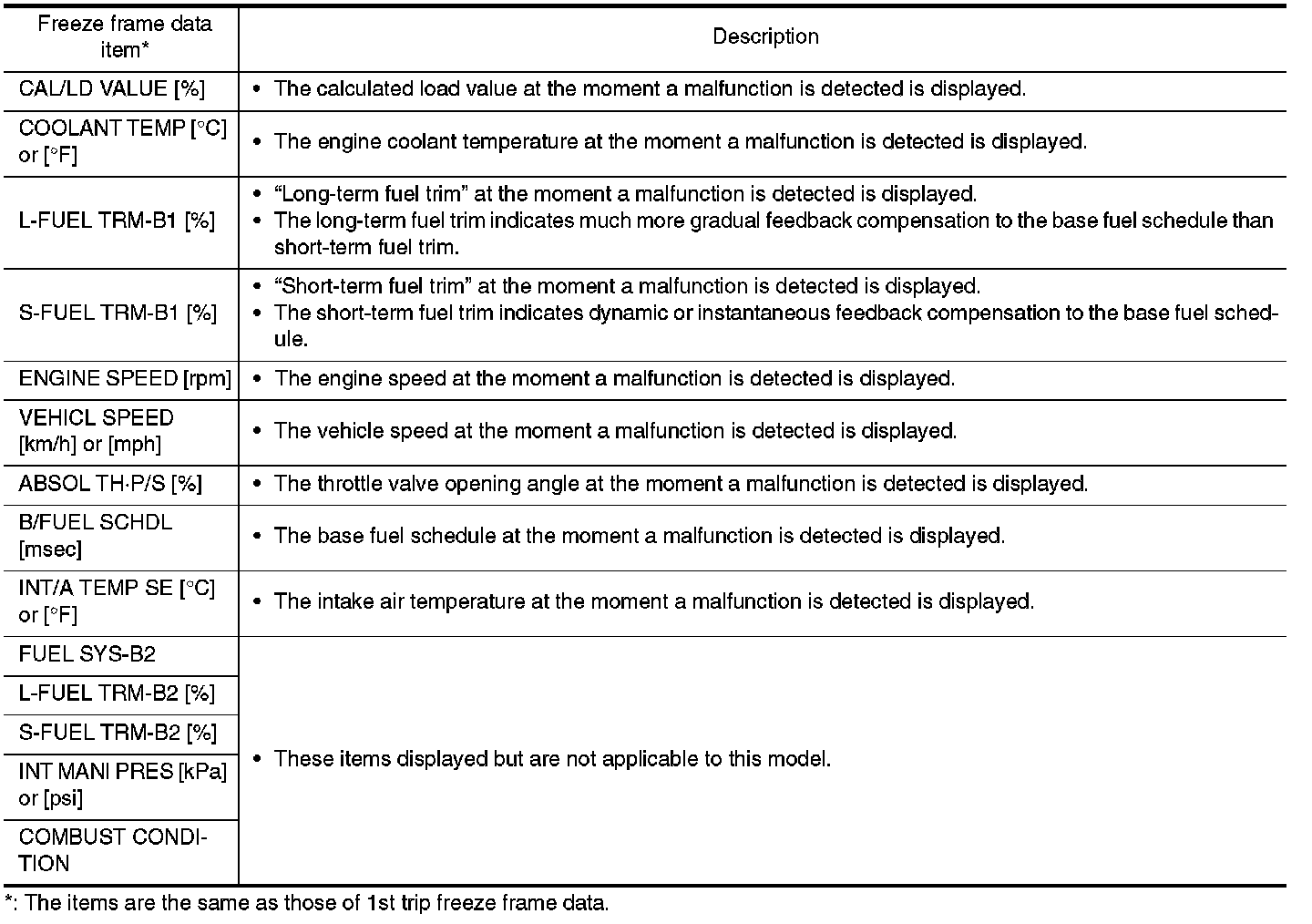 Freeze Frame Data and 1st Trip Freeze Frame Data