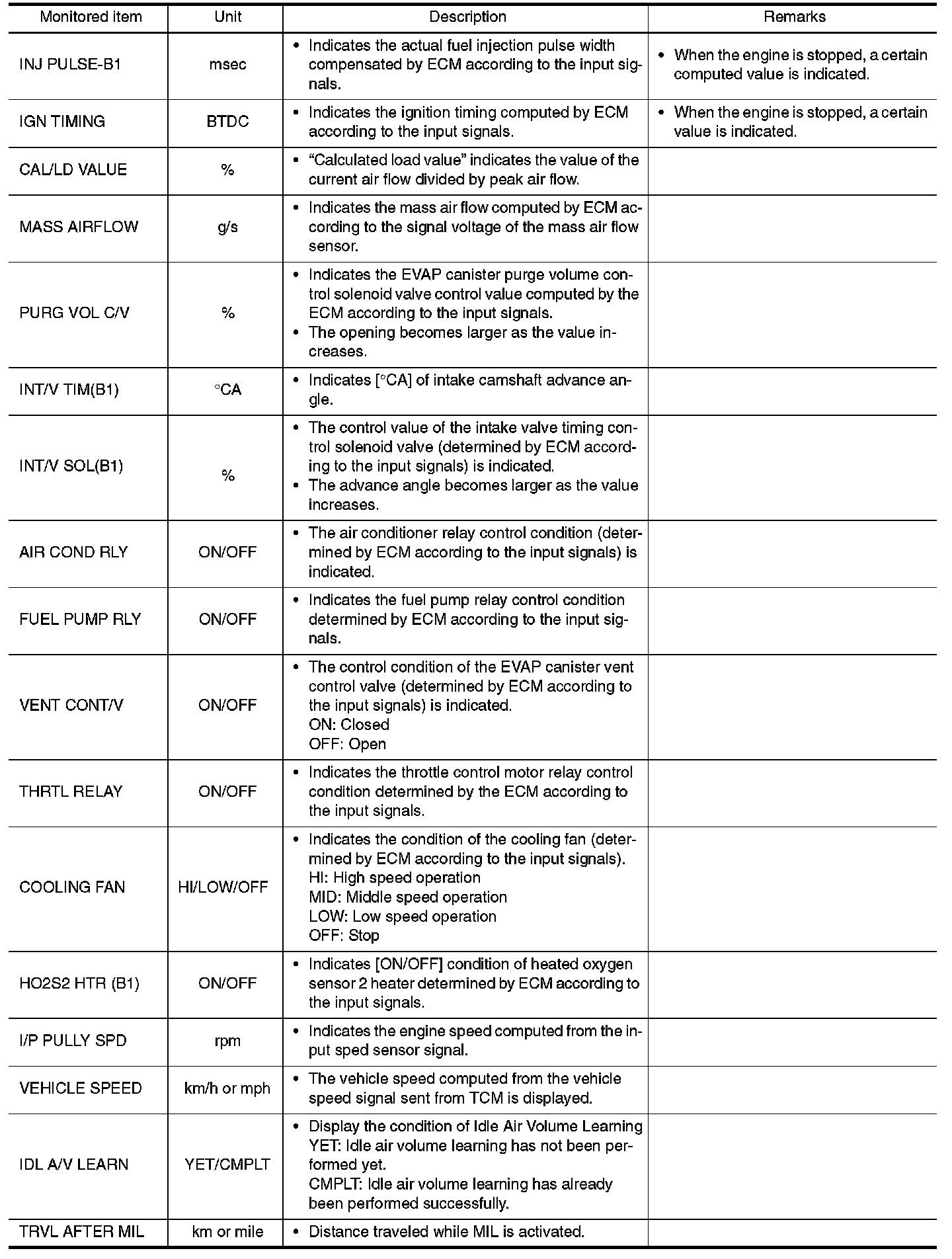 - If "TIME" is neither "0" nor "1t", the DTC occurred in the past and ECM shows the number of times the vehicle has been driven since the last detection of the DTC.
