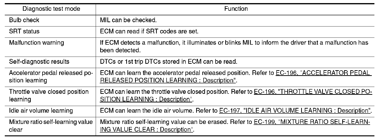 - After ignition switch is turned off, ECM is always released from the "self-diagnostic results" mode.