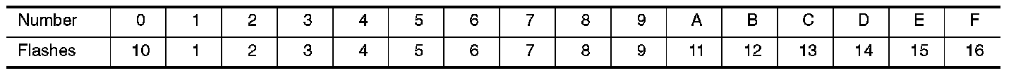 A particular trouble code can be identified by the number of four-digit numeral flashes per the following.