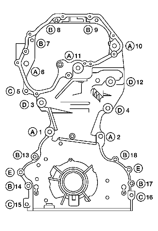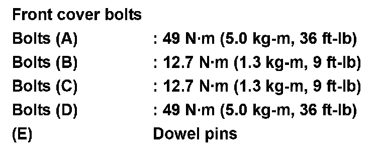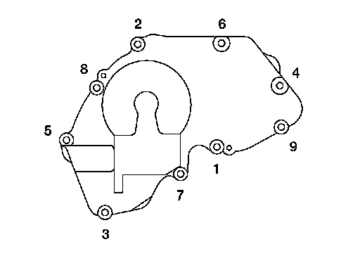 Tighten front cover bolts in the numerical order as shown.