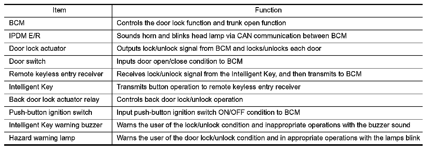 REMOTE KEYLESS ENTRY FUNCTION : Component Description