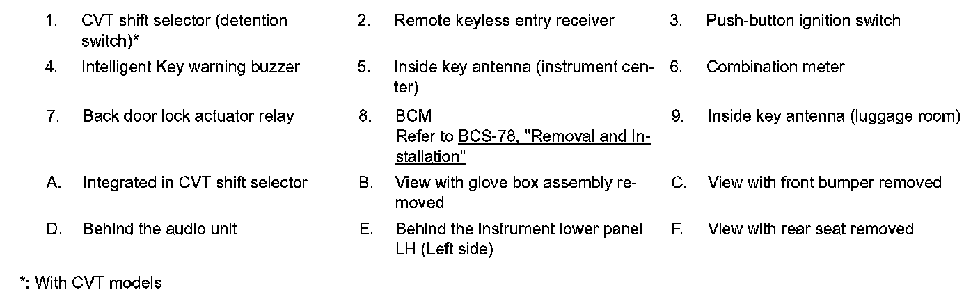 INTELLIGENT KEY SYSTEM : Component Parts Location