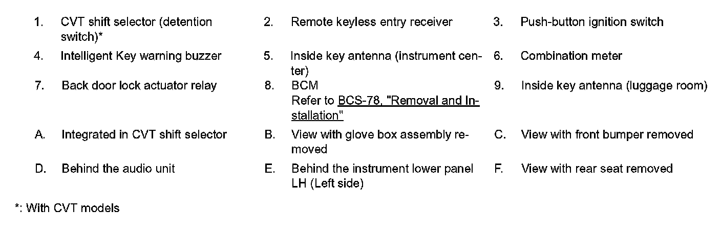 WARNING FUNCTION : Component Parts Location