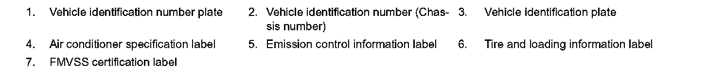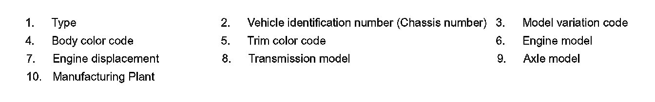 VEHICLE IDENTIFICATION NUMBER ARRANGEMENT