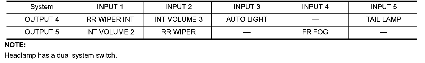 - The circuit between OUTPUT 4 and INPUT 5 is formed when the TAIL LAMP switch is turned ON.