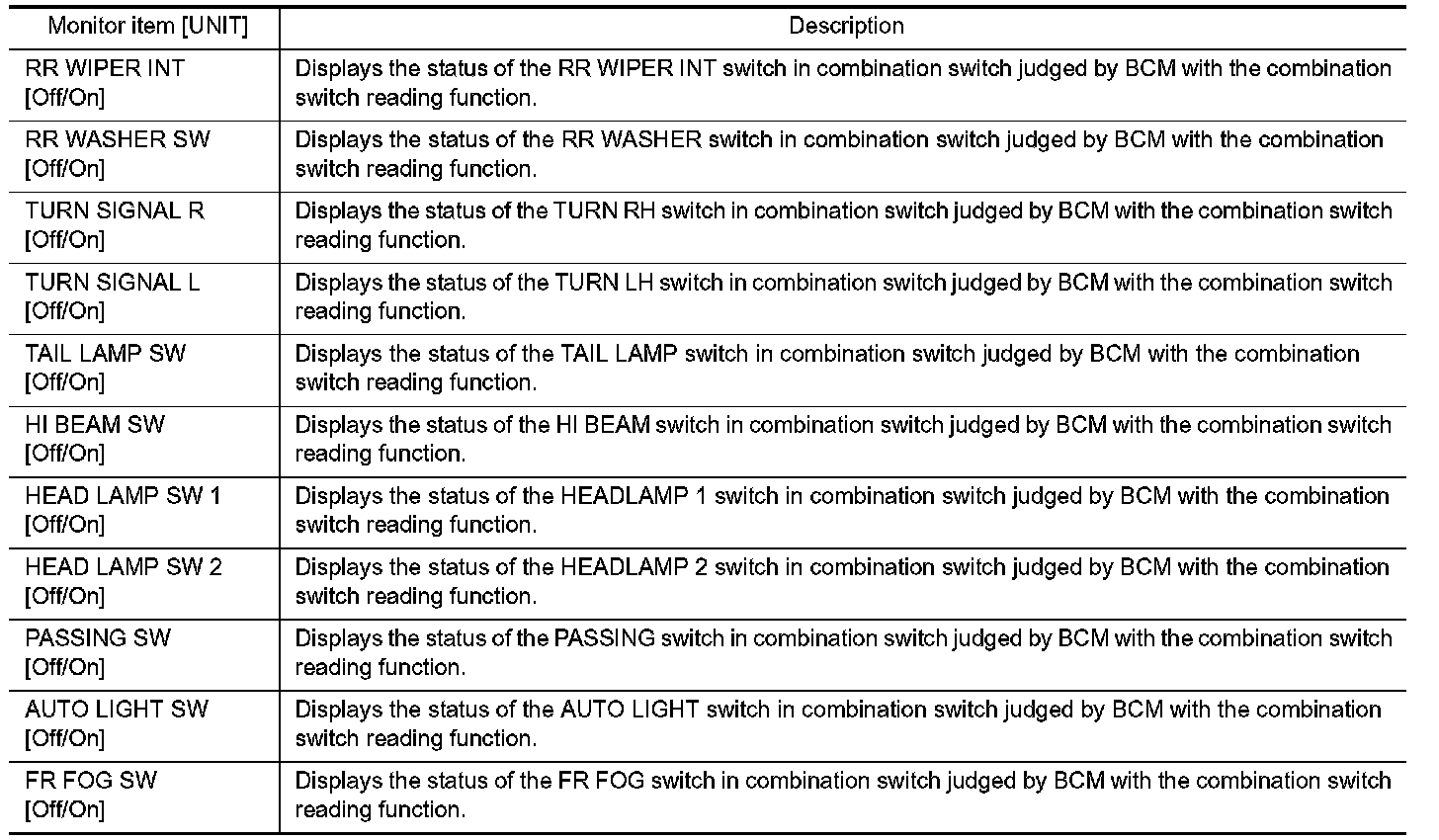 COMB SW : CONSULT-III Function (BCM - COMB SW)