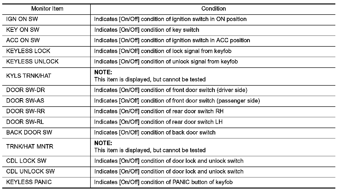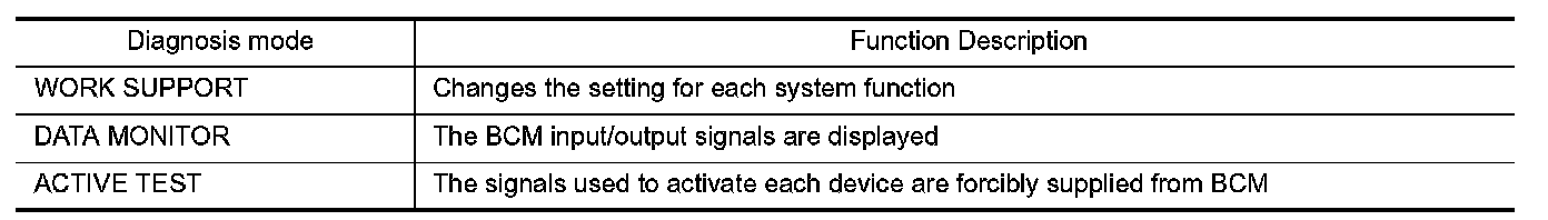 CONSULT-III performs the following functions via CAN communication with BCM.